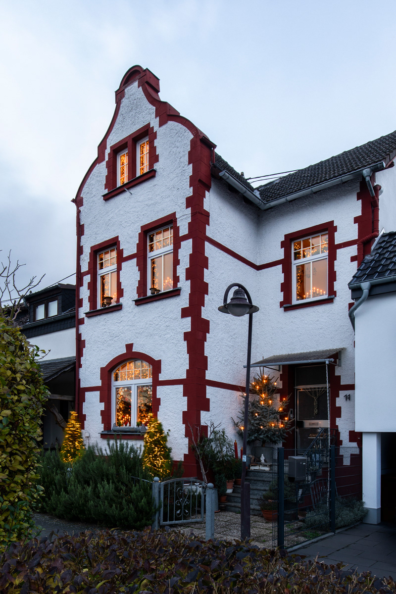 In this small cosy town on the river Rhine, everyone knows the little house that glows in a warmgolden light during the Christmas season, visible from far away.